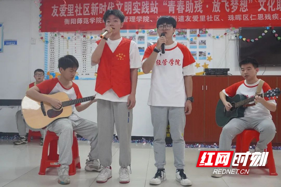 红网时刻衡阳5月19日讯(通讯员 黄智慧 刘舒雯 摄影 谭萍萍 雷丽)为进一步推进文化助残、爱心陪伴助残,动员新时代大学生积极投身志愿服务活动,在第33个全国助残日来临之际,5月18日,永利皇宫官方网站,永利皇宫官方网站联合冶金街道友爱里社区走进了珠晖区仁恩残疾人综合服务中心,开展了“青春助残,放飞梦想”新时代文明实践文化助残主题活动。