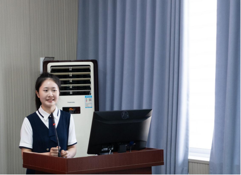 新生代表唐榕蔓同学上台发言。她表示,研究生生涯是知识追求和自我探索的双重旅程,强调了厚德与才华并重的重要性,并提醒同学们铭记“厚德、博学、励志、笃行”的校训和“崇德、笃学、经世、济民”的院训,不断前行。