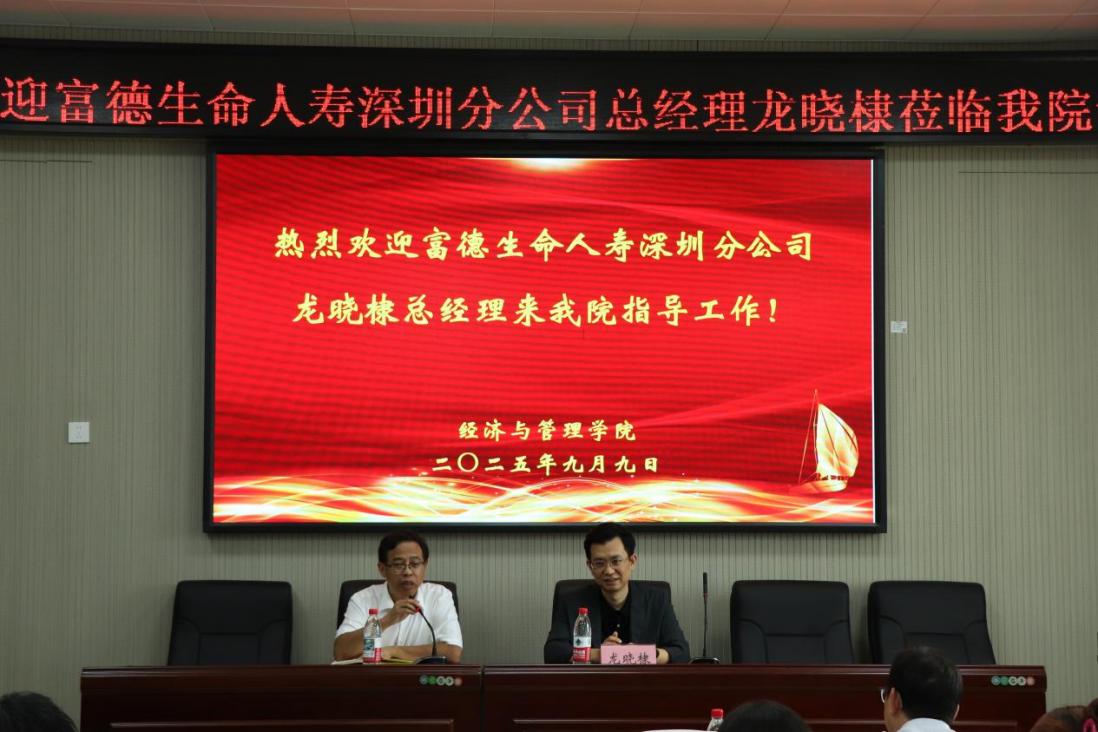 金秋九月,职海启航。2025年9月9日,应学院邀请,富德生命人寿深圳分公司总经理龙晓棣莅临永利皇宫官方网站作研究生成长与职业规划讲座,讲座由院长肖黎教授主持,副院长邹建国、研究生秘书刘汉辉及2023-2025级全体硕士研究生参加本次活动。