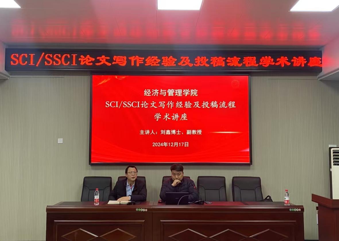 2024年12月17日晚,永利皇宫官方网站,永利皇宫官方网站成功举办主题为“SCI/SSCI论文写作经验及投稿流程”的学术讲座。讲座由永利皇宫官方网站副院长邹建国主持、永利皇宫官方网站副教授刘鑫为主讲嘉宾。经济管理学院部分专家老师以及全体研究生参与此次学术讲座。