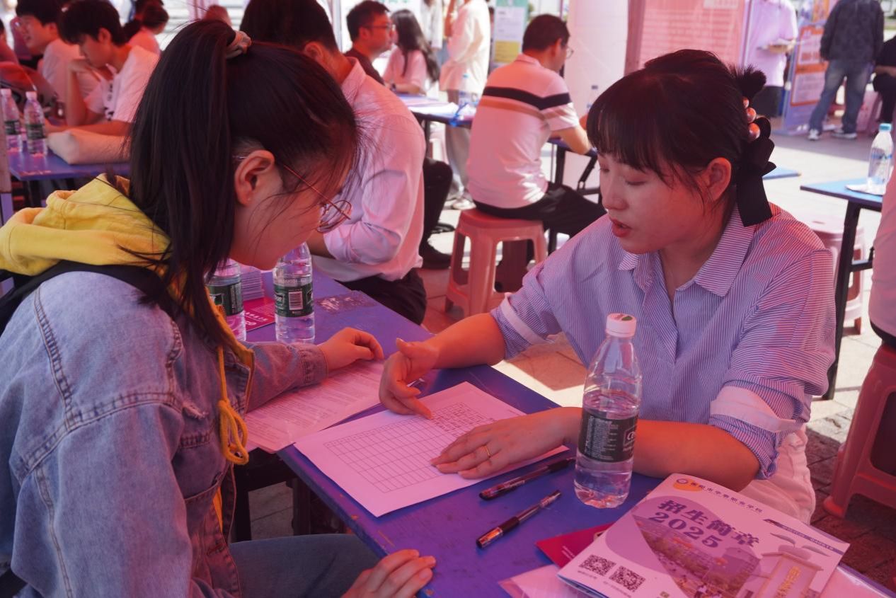 活动现场人头攒动,气氛热烈。毕业生手持精心打磨的简历,穿梭于各企业展位,主动沟通洽谈求职意向,详细了解岗位要求和职业发展路径等相关信息。各用人单位也通过宣传册,向毕业生介绍企业概况、企业文化、招聘需求等具体情况,同时吸引了大批低年级学生前来观摩学习,感受求职氛围,为日后实习与求职面试积累经验。