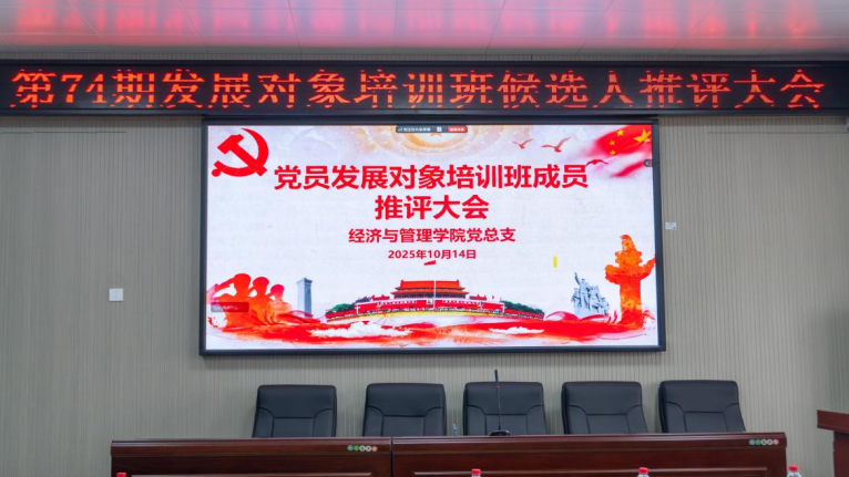 为从严从实做好党员发展与教育工作,切实把政治过硬、综合素质突出的优秀青年吸纳到党组织中来,永利皇宫官方网站于2025年10月14日在仁智楼C604召开“第74期发展对象培训班候选人推评大会”,此次会议由学生党建中心主任刘宇琴主持,永利皇宫官方网站党总支副书记周思敏、学工办副主任兼分团委书记谢媛、经济学专业学生党支部书记陈志鹏、国贸与电商学生党支部书记张瑶、财务管理专业学生党支部书记廖航瑜、全体学生党员、学生代表以及第74期发展对象培训班候选人参会。