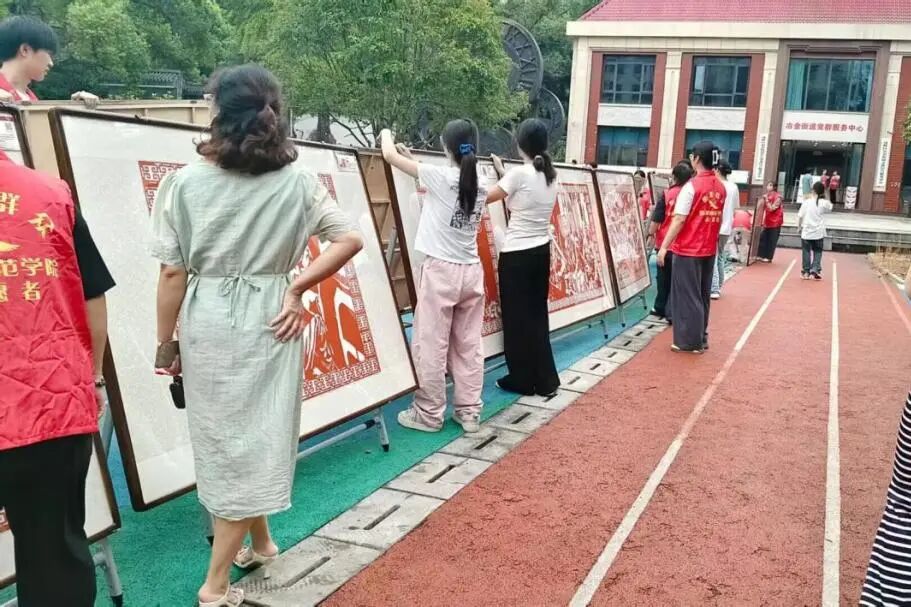 布置过程中,志愿者也深入学习每幅剪纸背后的历史故事,重温烽火岁月中的民族气节与不怕牺牲的精神。展览迅速吸引社区居民驻足观看。剪纸不仅以视觉语言讲述历史,更成为连结对话与记忆的文化纽带。