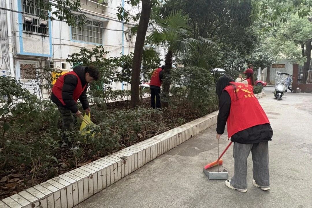活动现场,志愿者们手持工具,有序前往社区主干道、绿化带、公共活动区。从路面纸屑到墙角积尘,从落叶杂草到隐蔽垃圾,大家细致排查每一处卫生死角,默契分工,相互配合。志愿者们的青春身影活跃在社区的各个角落。