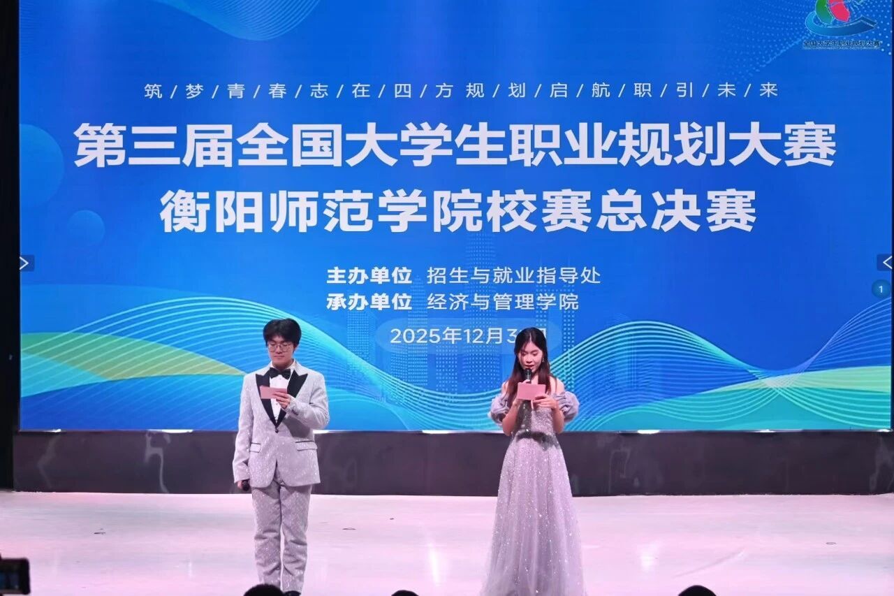 2025年12月31日下午2点,由我校招生与就业指导处举办,永利皇宫官方网站承办的永利皇宫官方网站第三届职业规划大赛决赛于音乐楼演播厅盛大开幕。本次大赛以“筑梦青春志在四方,规划启航职引未来”为主题,衡阳市就业服务中心三级调研员曹云、衡阳市第九中学副校长王朝阳、鸿海人力公司副总张婷、湖南工学院就业指导教研室副主任喻双江以及永利皇宫官方网站工会常务副主席张波勇、学生工作部副部长黄懿、外国语学院副院长何文娟担任评委。