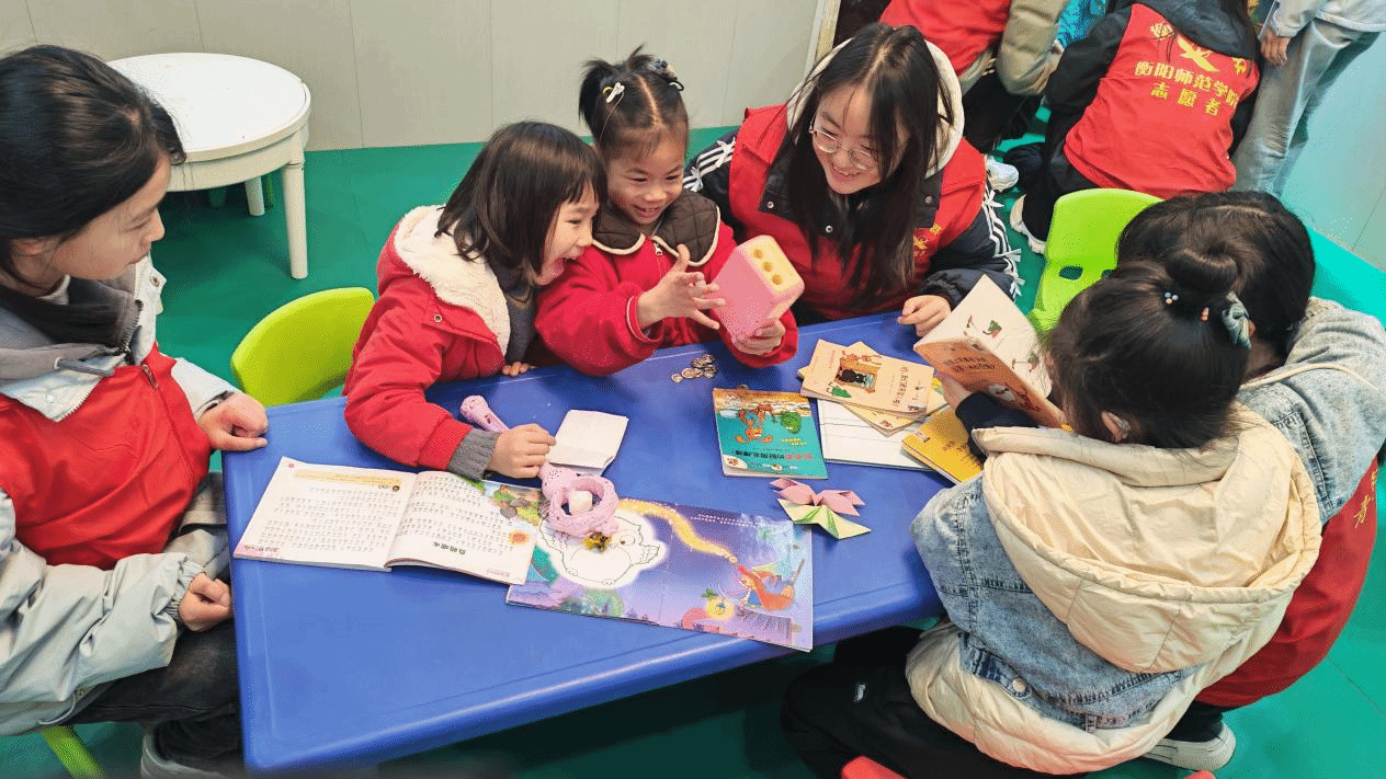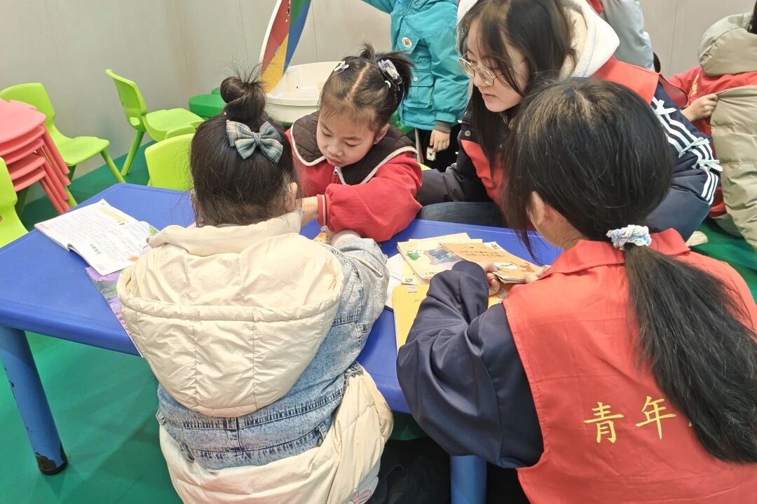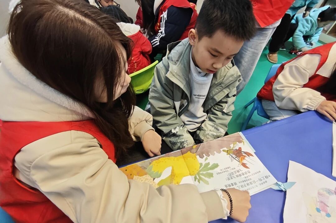 温馨的氛围中,志愿者们与孩子一对一结对,围坐在一起。大家精心准备了图文并茂的雷锋故事,一边指着生动的图画,一边用手势比划情节。孩子们专注地看着、学着,眼神中闪烁着对雷锋精神的理解与向往。志愿者们耐心讲解助人为乐、无私奉献的美好品质,让善良的种子在稚嫩的心田生根发芽。