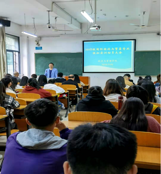 永利皇宫官方网站按照教学计划对2018级国际经济与贸易专业的所有学生进行了为期一周的模拟实训活动。学院于2020年11月3日展开了模拟实训动员会,并于11月13日圆满完成了模拟实训汇报会。与会人员有学院领导、专业指导老师、教务秘书以及2018级国际经济与贸易专业所有学生。