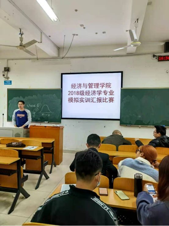 永利皇宫官方网站按照教学计划对2018级经济学专业的所有学生进行了为期一周的模拟实训活动。学院于2020年10月23日展开了模拟实训动员会,并于10月30日圆满完成了模拟实训汇报会。与会人员有学院领导、专业指导老师、教务秘书以及2018经济学专业所有学生。