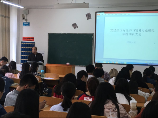 本学期我们永利皇宫官方网站对2015级国贸专业的所有学生进行了为期一周的模拟实训。2018年4月13日展开了模拟实训动员会,与会人员有学院屈瑜君副院长及专业指导老师(周镕基、陈东升、吴月、钟搏、肖黎、冯志坚、阳玉香、张彩霞、刘珂、陈勇、谷敏、李昕宸)、教务秘书水丽蓉老师以及2015国贸专业所有学生,4月20日举行了模拟实训汇报会。在实训中,同学们在指导老师的指导下,圆满地完成了实训活动。