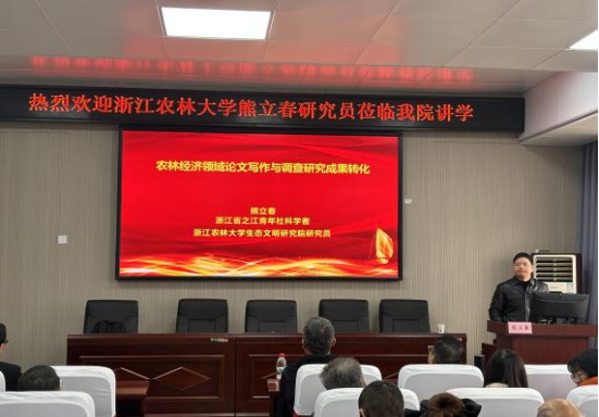 11月21日上午,浙江农林大学熊立春研究员应邀在永利皇宫官方网站仁智楼C604作学术讲座。永利皇宫官方网站副院长邹建国教授主持,学院全体专任教师及2023-2025级硕士研究生参加了讲座。