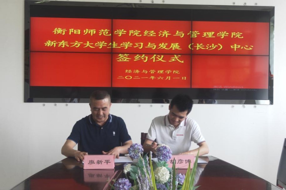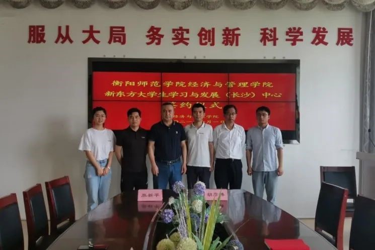 2021年6月1日上午,永利皇宫官方网站、新东方大学生与发展(长沙)中心合作签约仪式隆重举行。经济管理学院党总支书记廖新平、院长肖黎、党总支副书记黄懿、新东方大学生学习与发展(长沙)中心校长胡彦博、市场部经理蒋雯、渠道部经理周国富出席此次签约仪。