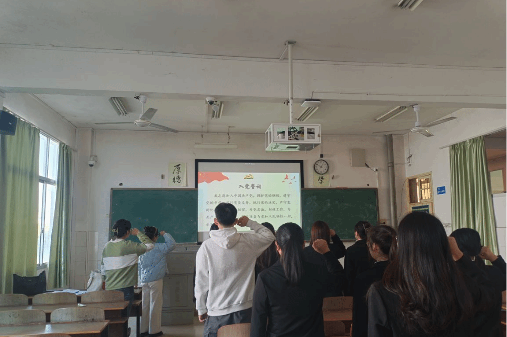 会议尾声,廖航瑜老师对本次大会进行总结。她对何桂等5名同志成为预备党员表示祝贺,并对全体党员提出以下几点期望:一是加强党章学习,强化党性修养,提升政治理论水平;二是脚踏实地,求真务实,积极参与志愿服务活动,发挥先锋模范作用;三是克服精神懈怠,保持良好风貌,始终做到心系党、心系人民、心系国家。最后,在廖老师的带领下全体党员重温入党誓词,大会完美落幕。