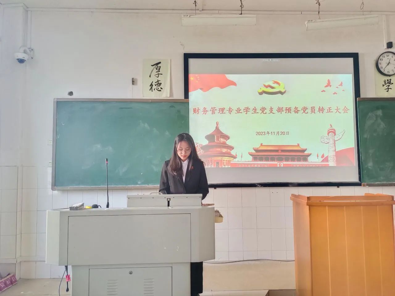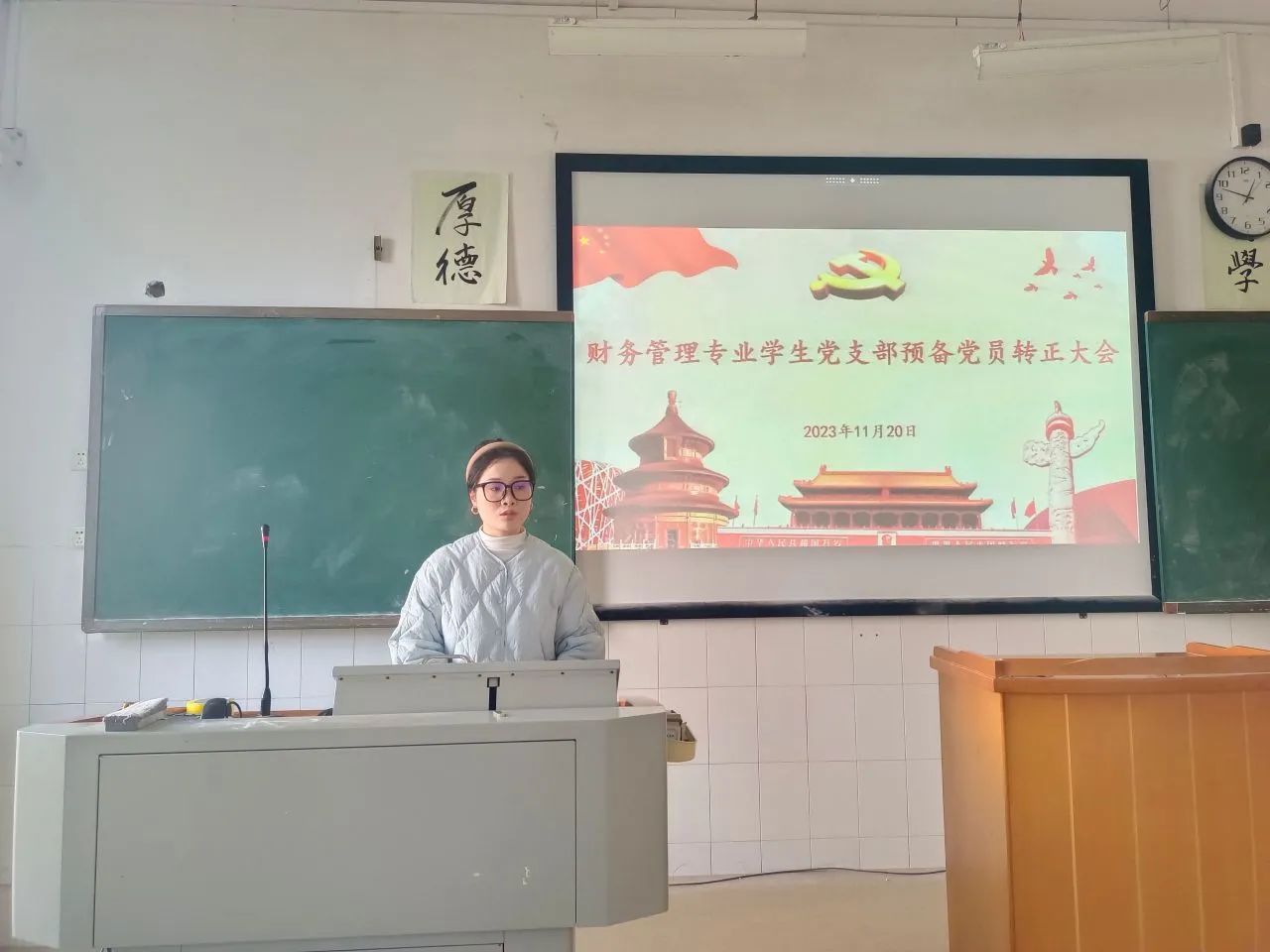 为扎实做好党员发展工作,发挥基层党组织的战斗堡垒作用,增强党员队伍的生机与活力,2023年11月20日下午,永利皇宫官方网站财务管理专业学生党支部于文科楼A302教室召开财务管理专业学生党支部预备党员转正大会,审议、讨论、表决刘新妍等4名预备党员的转正问题。