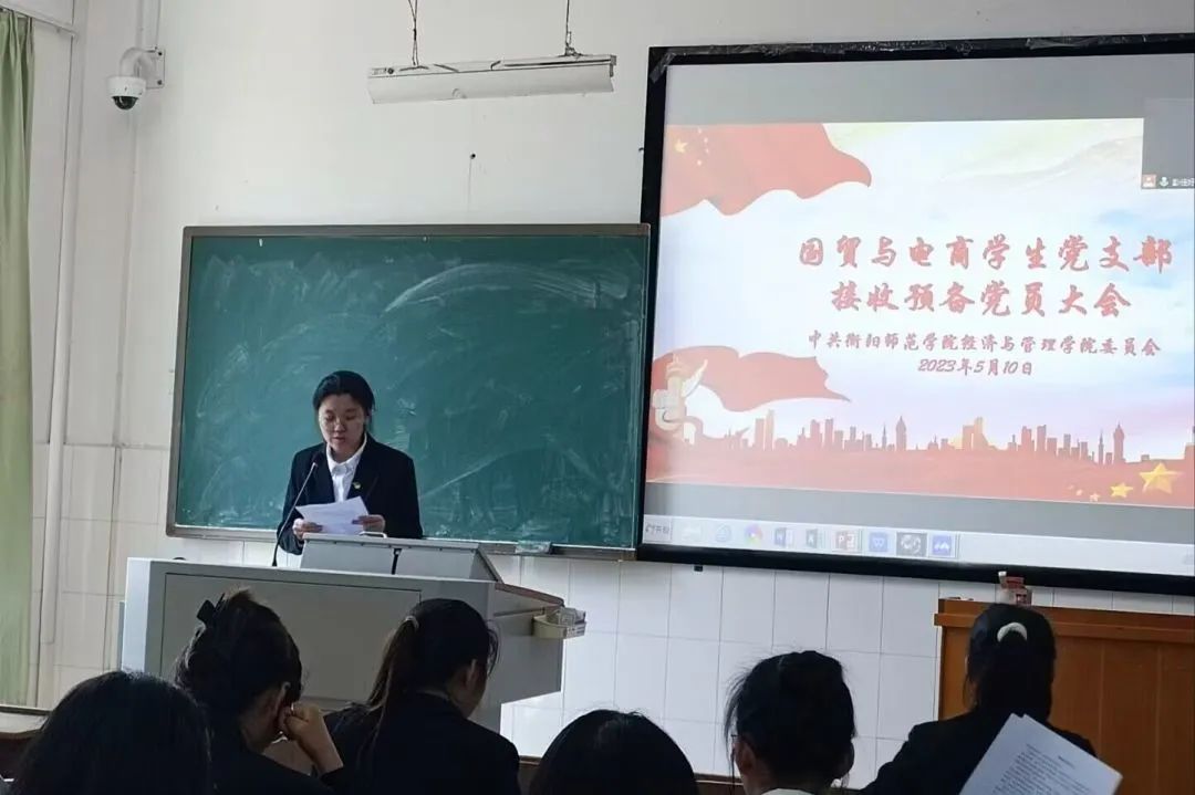 会议伊始,国贸与电商学生党支部书记谢媛带领国贸与电商学生党支部全体党员重温入党誓词。同时,谢媛老师强调此次会议秩序,表示每位党员同志必须秉持公平、公正的原则进行投票,7名发展对象在发言过程中要实事求是,客观剖析自己,正视自己的不足,虚心接受其他党员同志对自己的批评建议。