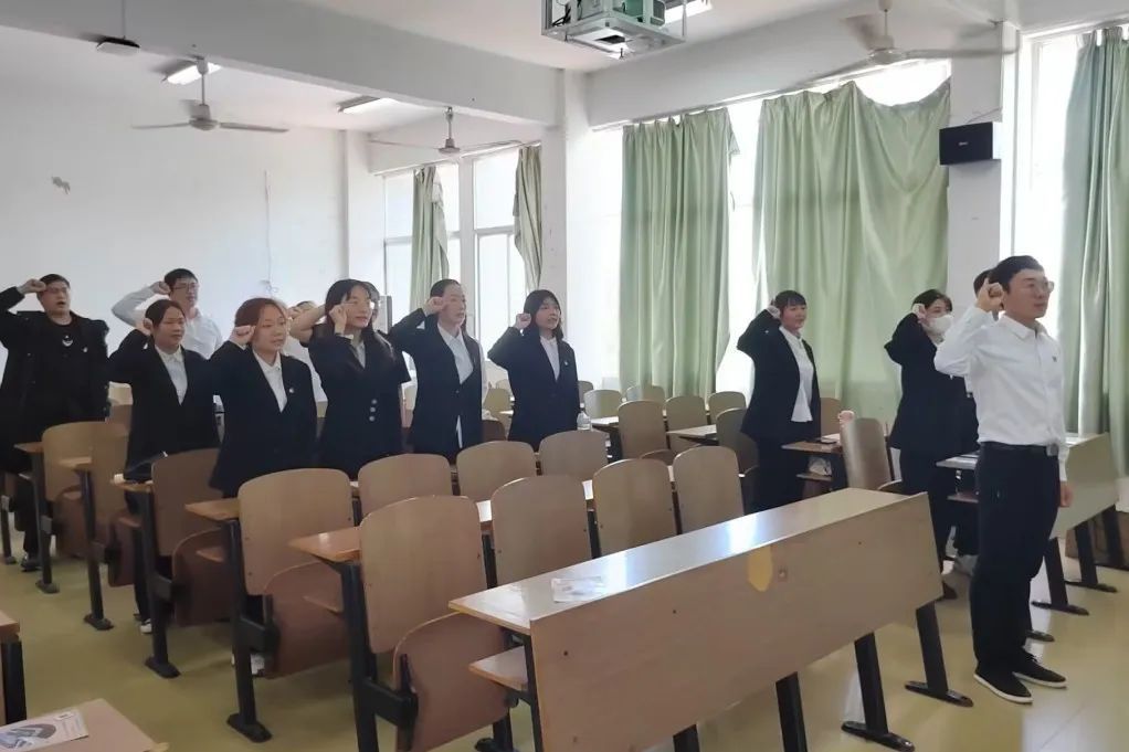 会议尾声,由李帅奇老师进行会议总结。李老师对转正的同志表示祝贺,并希望各位党员同志不忘初心与使命,坚定立场,坚持学习,无论是在校学习,还是走上工作岗位,都要继续发扬艰苦奋斗的精神,时刻牢记要发挥党员的先锋模范作用,不断用行动锤炼党性,踔厉奋发,笃行不怠,做一名优秀的青年党员。最后,在李老师的带领下,全体党员重温入党誓词,大会在庄严的誓词下完美落幕。