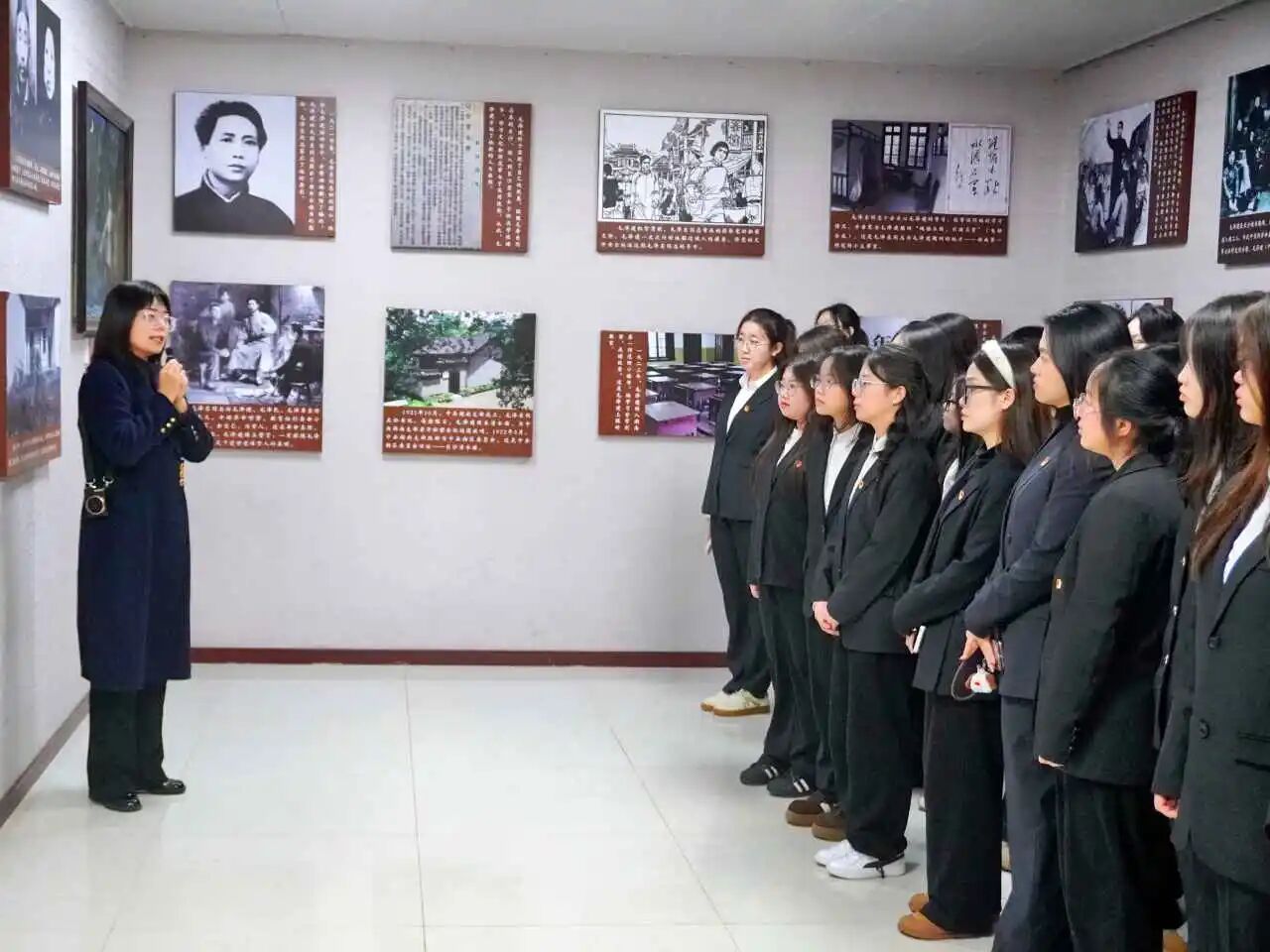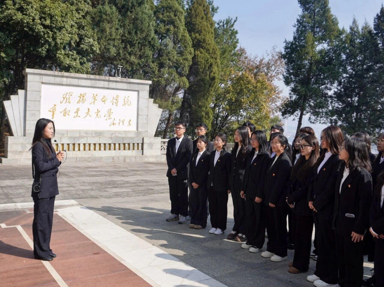 随后,在毛泽建烈士纪念馆,讲解员深情讲述了毛泽建烈士被捕后遭受酷刑却坚贞不屈、始终坚守革命信仰的壮烈事迹,展墙上“为有牺牲多壮志”的铿锵字句,让每一位学生干部深受震撼。大家深刻感悟到她不畏生死、忠诚报国的革命气节,更明白身为学生骨干,要将勇毅奉献的精神内核,融入到日常工作的每一处细节。随后,辅导员张瑶老师在毛泽建烈士陵园为大家讲授了一堂深刻的微党课。她强调:毛泽建烈士的这份担当与勇气,为我们如何践行初心使命树立了鲜活榜样,我们将把对革命先烈的缅怀敬仰,转化为脚踏实地的行动,带领身边同学用青春力量书写责任与担当。