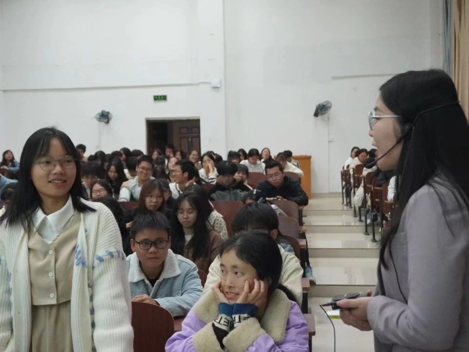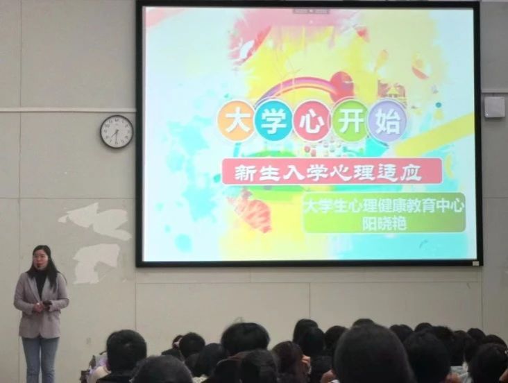 随后,阳老师从生活环境变化、人际关系变化、学习环境变化三个方面阐述大学生活与高中生活的区别。并且重点指出学生们"水土不服"现象、"歇口气"现象和"学习方法困惑″现象。接着阳老师从人的理性局限、过度关注自我、延缓长偿付期三个方面解释了出现上述适应问题的原因,从专业角度为同学们解答疑惑。
