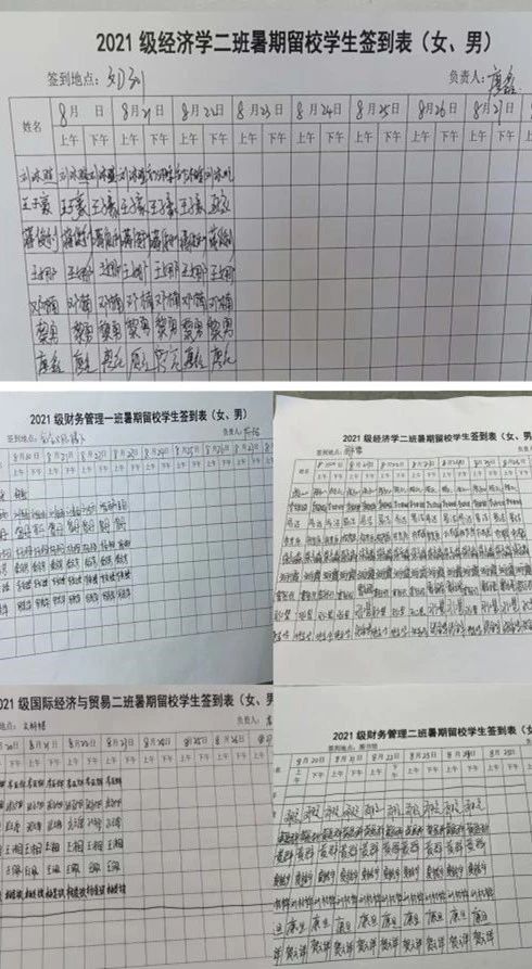 为精准掌握学生留校动态,学院制定了签到打卡制度,各班实行专人负责制,坚持每日排查,严格请假制度。签到打卡制度每日分三次,上午、下午在指定地点打卡,晚上在QQ群进行宿舍拍照定位签到。同时每日将签到打卡情况上报学院负责老师,常态化、持续化落实留校管理机制,做到及时跟踪掌握实情,时刻做到心中有数,切实保障留校学生的安全。