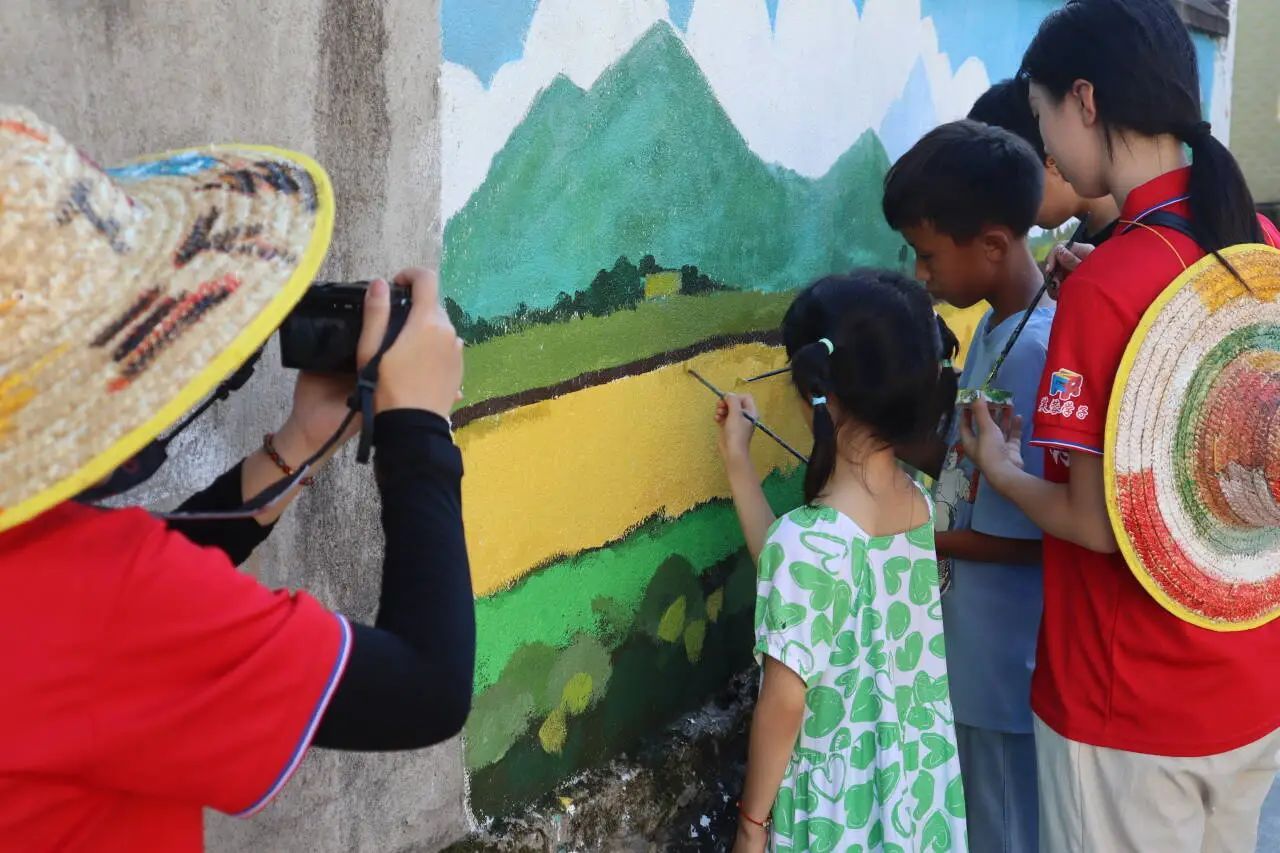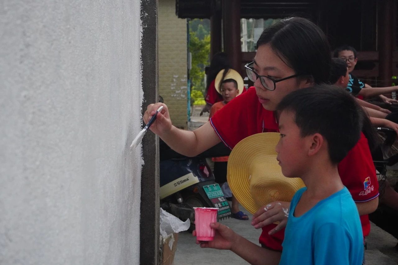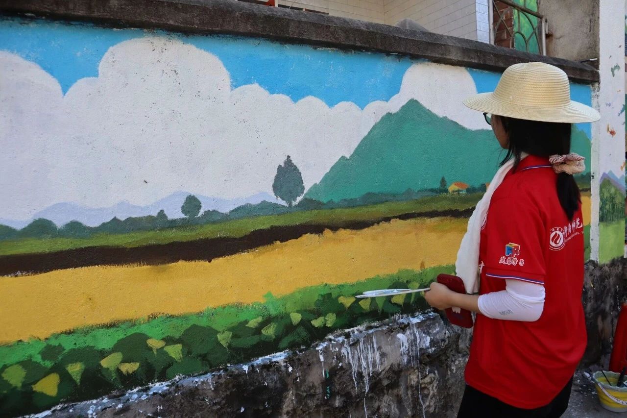 以文化人,以文动人,志愿者们在艺术创作中感受柳林村深厚的文化底蕴,在宣传“稻花鱼”品牌特色的同时,唤起当地村民们对民俗文化的认同感和自豪感,自觉投身于乡村振兴的行动中去,为乡村发展赋能。在夕阳斑驳的光影里,那些志愿者与村民们精心绘制的墙绘,成为了美丽乡村的装潢点饰。当地村民表示“我们村又多了一个打卡点啊!”