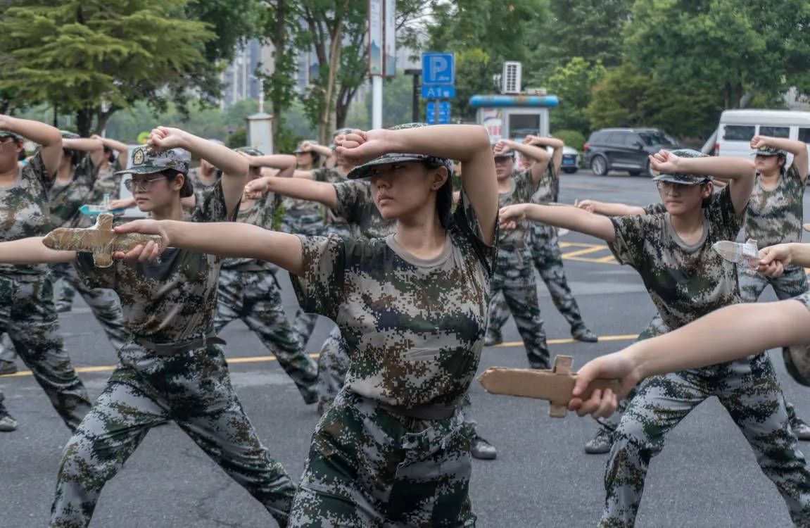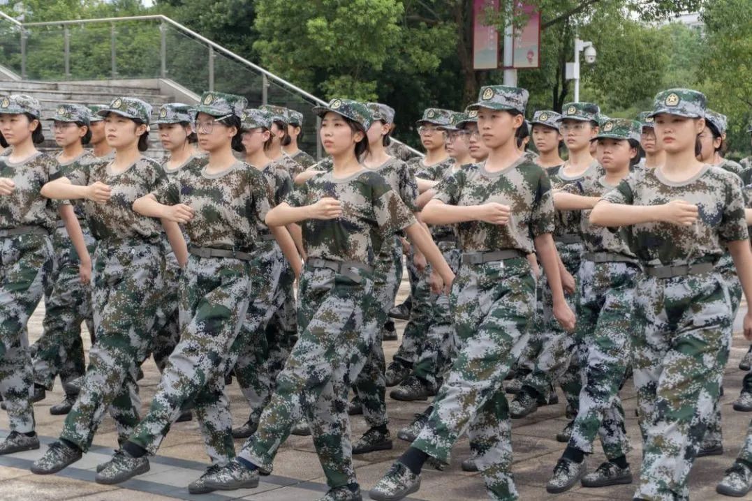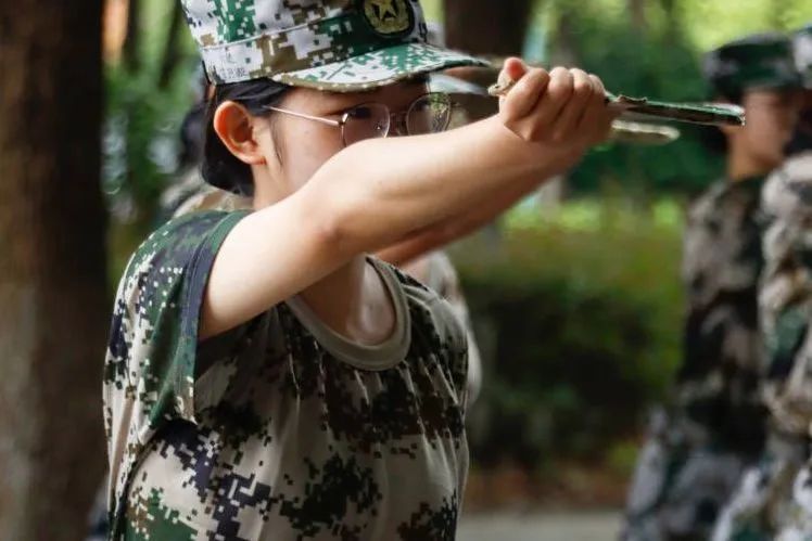 匕首操训练中,新生们手持匕首,眼神锐利,她们每一次的转身、挥砍都透露出严谨训练与团队精神的配合,动作精准,气势逼人,尽显英姿。