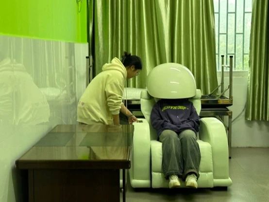 在音乐放松室里的音乐放松椅如同贴心的精灵,轻柔按摩和舒缓的音乐,拂去同学身心的劳累。不少同学纷纷上前体验,大家一边聆听着悦耳的音乐一边享受着舒适的按摩,结束后纷纷笑着表示刚刚沉浸在了一股宁静与平和之中,确实减少了些许疲惫。
