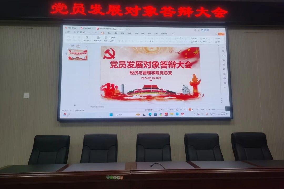 本次会议严格按照《中国共产党章程》和《发展党员工作手册》的既定流程和标准有序开展。18位发展对象依次发言答辩,陈华榕同学作为学生代表,怀揣着对成为党员的向往,于他而言,入党不仅是梦想的达成,更是自我价值的升华与实现,他表示将以实际行动展现对党的忠诚,加强理论学习、实践提升和自我反省,以永不懈怠、永不犹豫和永不退缩的精神,为党组织贡献更大力量。