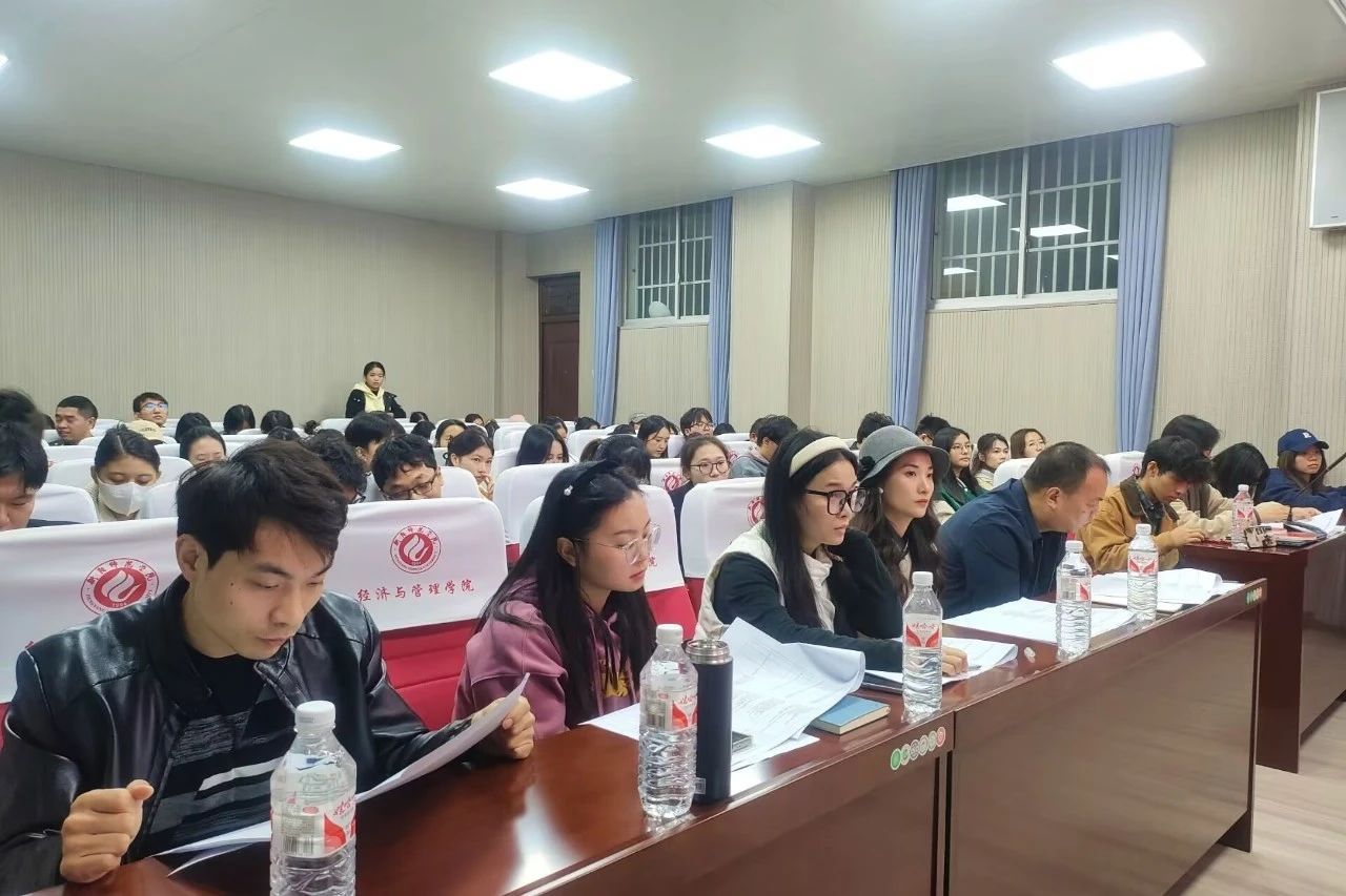 为深入推进党组织的持续发展,贯彻落实党员人才培养,永保党组织的先进性和纯洁性。永利皇宫官方网站于2024年11月18日晚上19:00在文C604召开“发展对象入党前答辩大会”,此次会议由学生党建中心主任吴宇萱主持,永利皇宫官方网站党总支副书记周思敏、国贸与电商学生党支部书记谢媛、经济学专业学生党支部书记黄智慧、财务管理专业学生党支部书记廖航瑜、2022级辅导员老师陈志鹏、学生党员、班级代表以及第72期发展对象答辩人参加此次会议。