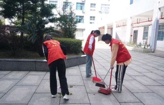 为强化公共区域环境品质,志愿者两人一组对广场地面进行深度清洁。借助扫帚、簸箕等工具,重点清理台阶缝隙、石墩周边等易积存杂物的区域。经过高效作业,广场地面纸屑、落叶等彻底清除,公共空间焕发整洁有序的新气象。