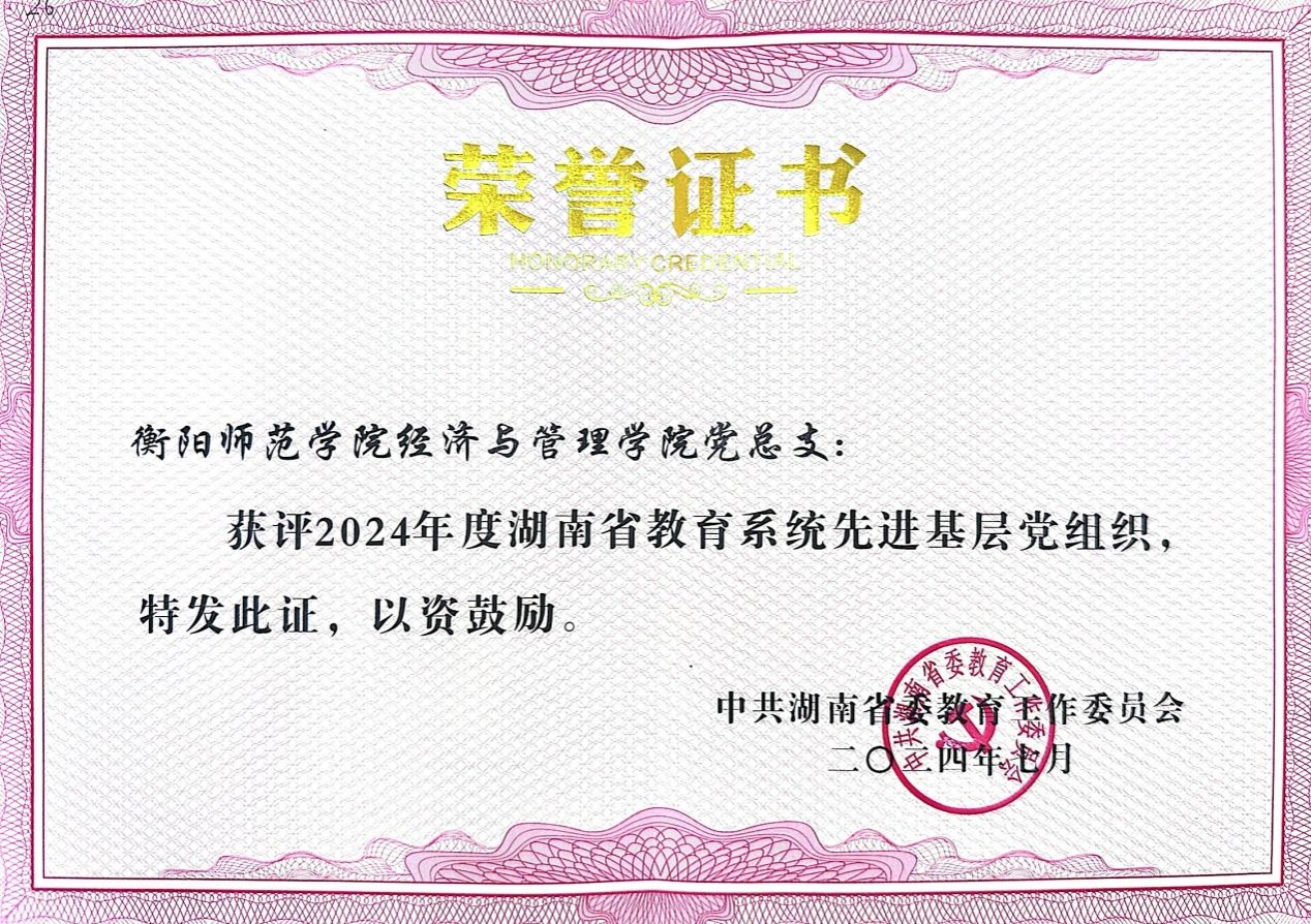 近日,湖南省委教育工委印发了《关于表彰全省教育系统优秀共产党员、优秀党务工作者和先进基层党组织的通报》(湘教工委通〔2024〕25号),永利皇宫官方网站党总支荣获湖南省教育系统先进基层党组织。近三年,我院党总支先后荣获学校党建工作标杆院系、先进基层党组织。