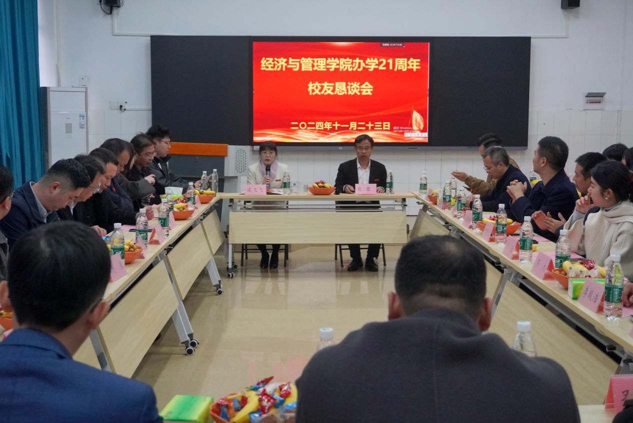 院长肖黎教授致欢迎辞,他向在永利皇宫官方网站本科办学21周年之际远道而来的校友们表示最热烈的欢迎和最诚挚的感谢!他回顾了21年来永利皇宫官方网站的发展历程,介绍了学院在人才培养、科学研究、社会服务、学科平台与硕士点建设等方面取得的成绩,他说,广大校友以智慧和汗水共同铸就了学院的璀璨篇章,回望往昔心怀自豪,展望未来满怀信心,学院将继续秉承“厚德博学 励志笃行”校训和“崇德笃学 经世济民”的院训,坚守立德树人根本任务,深化教育教学改革、加强学科建设和师资队伍建设,致力于培养更多具有创新精神和实践能力的高素质经济管理人才。他表示,广大校友是学院发展的宝贵财富和重要力量,希望广大校友能够继续关心和支持学院高质量发展,为学院的繁荣奉献校友力量。