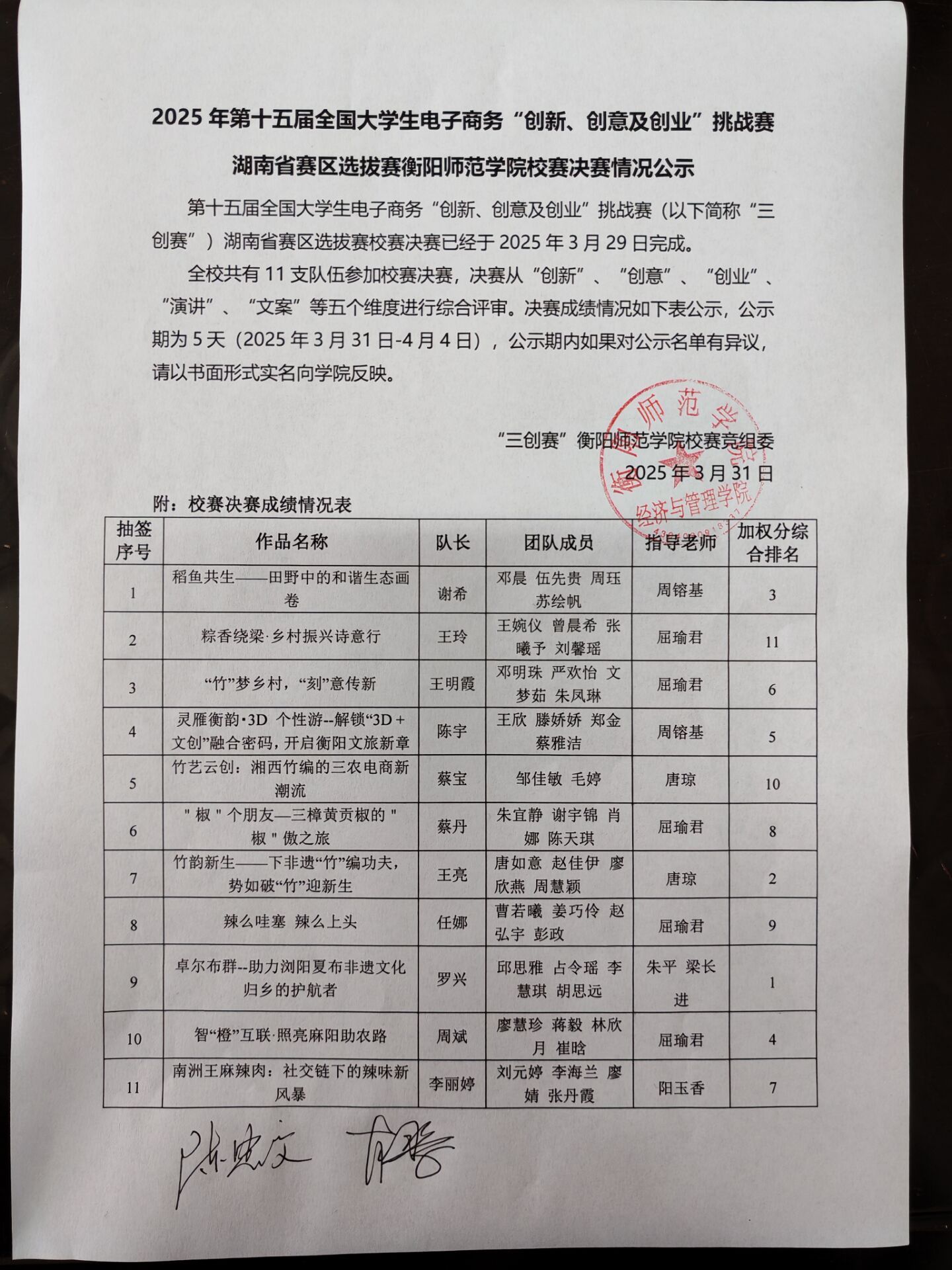 上一条:2025年第十五届全国大学生电子商务“创新、创意及创业”挑战赛湖南省赛区选拔赛永利皇宫官方网站南岳学院校赛决赛情况公示 下一条:第十五届全国大学生电子商务“创新、创意及创业”挑战赛 湖南省赛区选拔赛永利皇宫官方网站南岳学院校赛常规赛初赛成绩公布